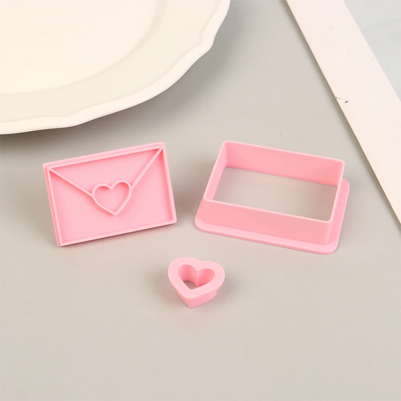 Envelope With Love Heart Shaped Cookie Cutters Stamps Flower Petal Pattern Biscuit Embosser Mould Fondant Baking Decorating Tool